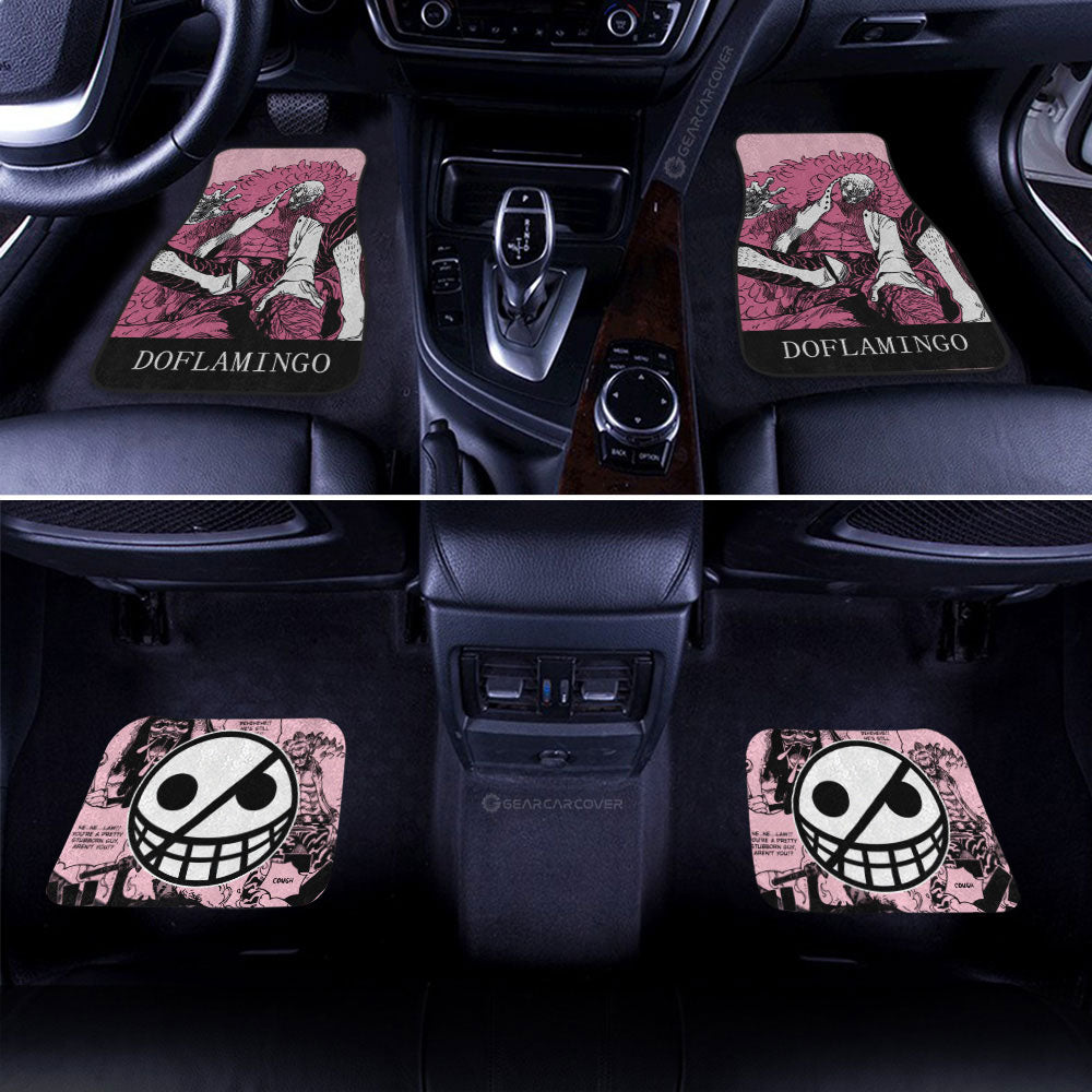 One Piece Car Mats Donquixote Doflamingo Manga Pattern Jolly Roger Symbol Car Floor Mats Pink