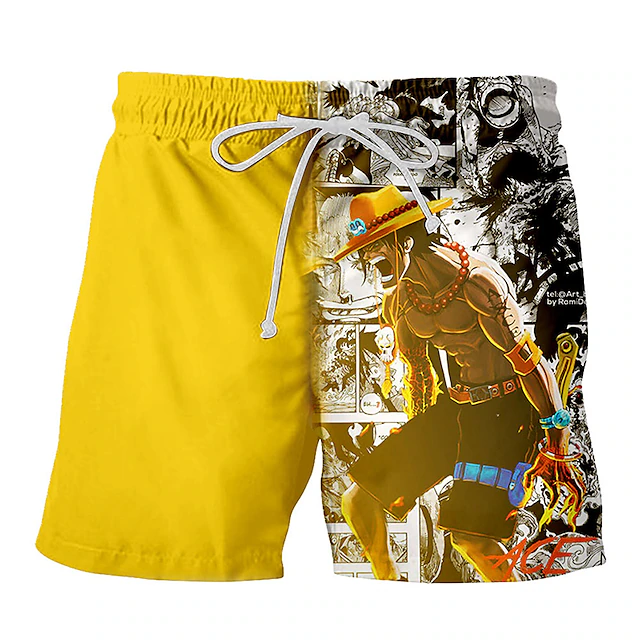 One Piece Shorts Portgas D Ace Graphic Manga Pattern Beach Shorts Yellow White
