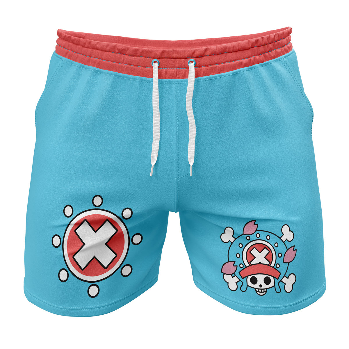 One Piece Shorts Tony Tony Chopper Symbol Jolly Roger Beach Shorts Blue Red