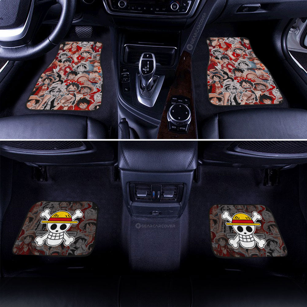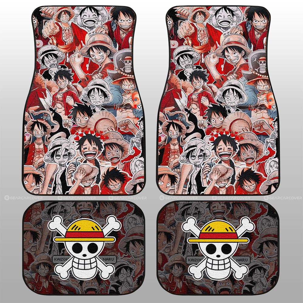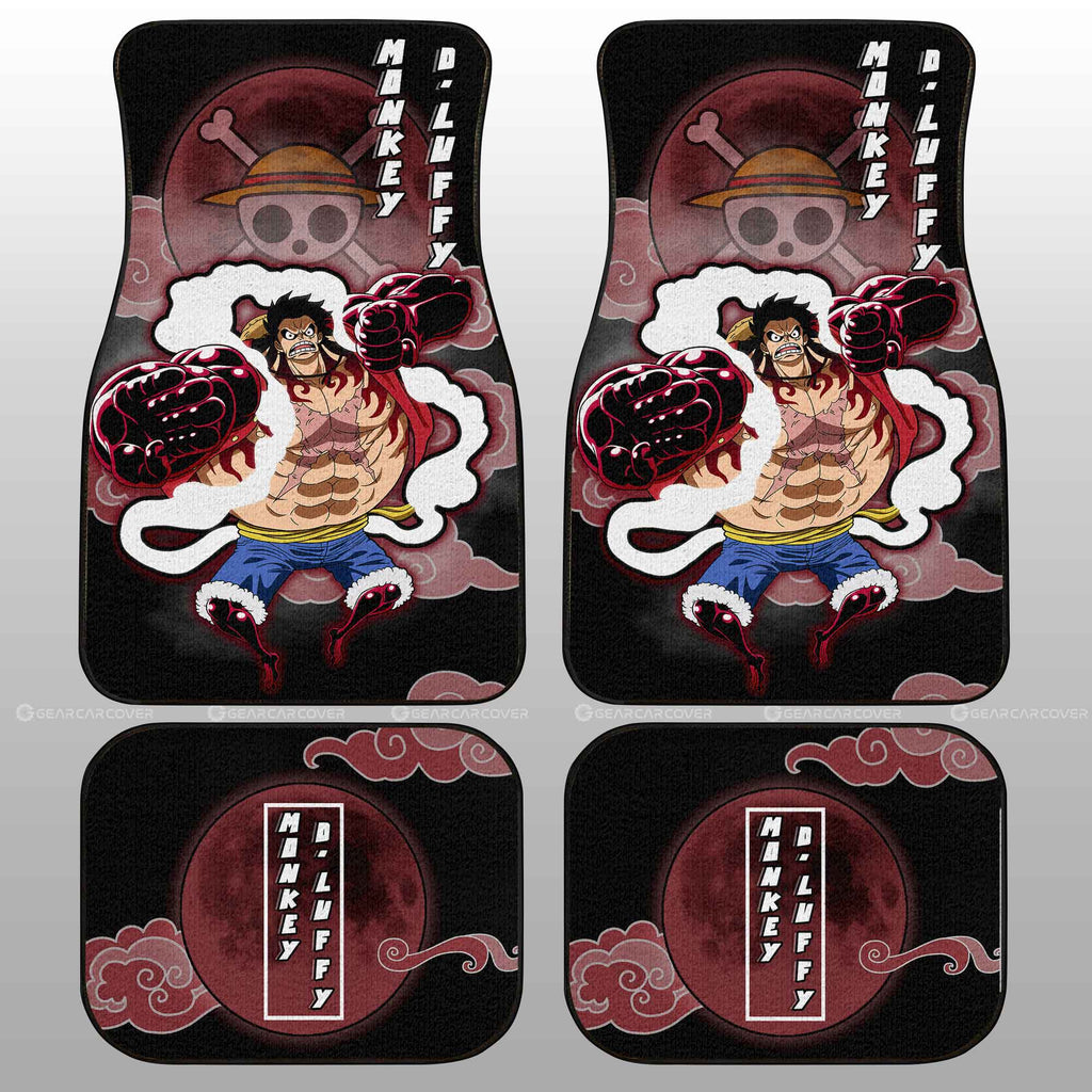 One Piece Car Mats Monkey D Luffy In Transformation Cloud And Moon Pattern Car Floor Mats Black Red