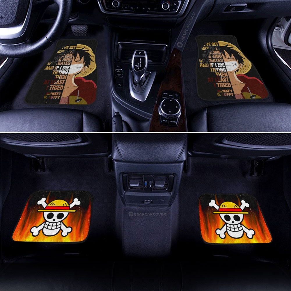 One Piece Car Mats Monkey D Luffy Quote Half Face Car Floor Mats Black Orange