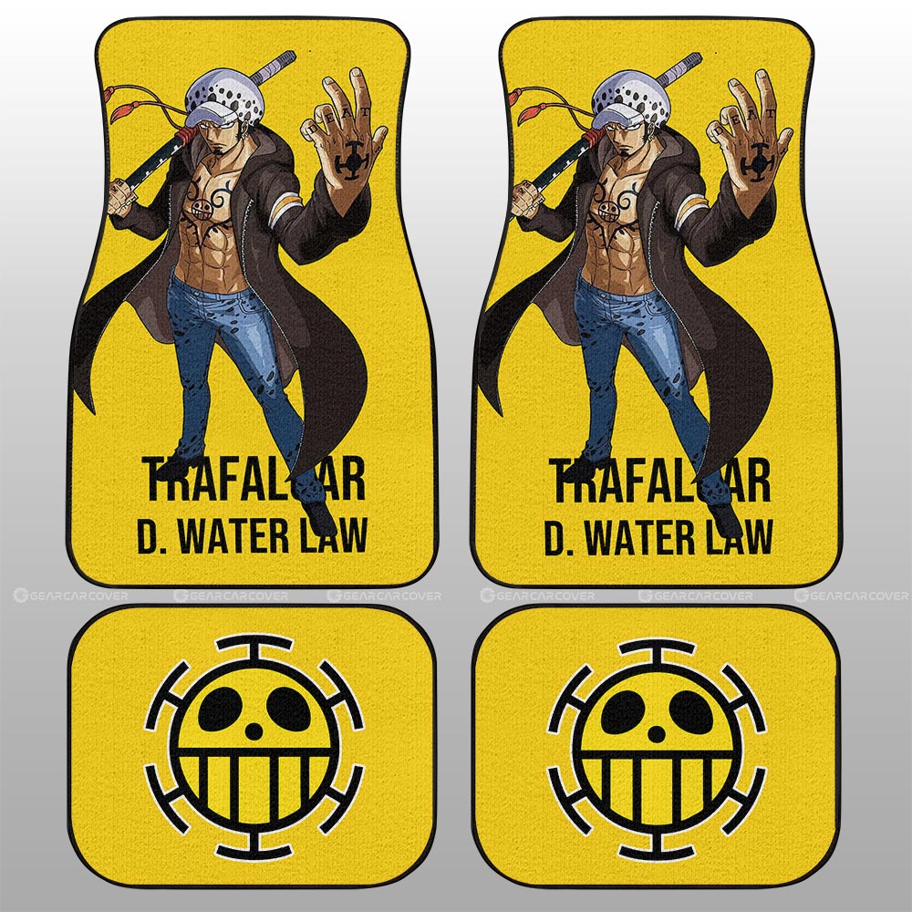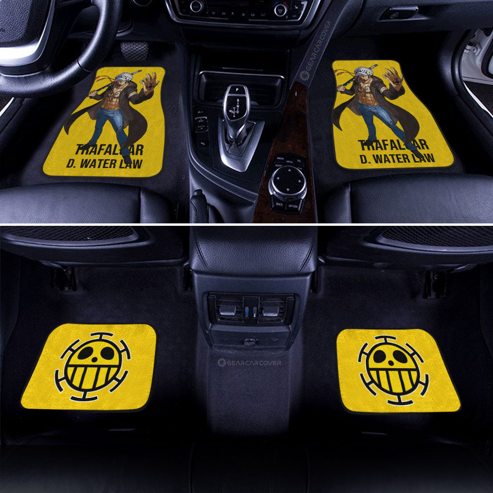 One Piece Car Mats Cool Pose Trafalgar Law Heart Pirate Symbol Car Floor Mats Yellow
