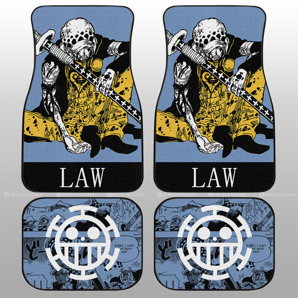 One Piece Car Mats Exhauted Trafalgar Law Graphic Manga Pattern Jolly Roger Symbol Car Floor Mats Blue Yellow