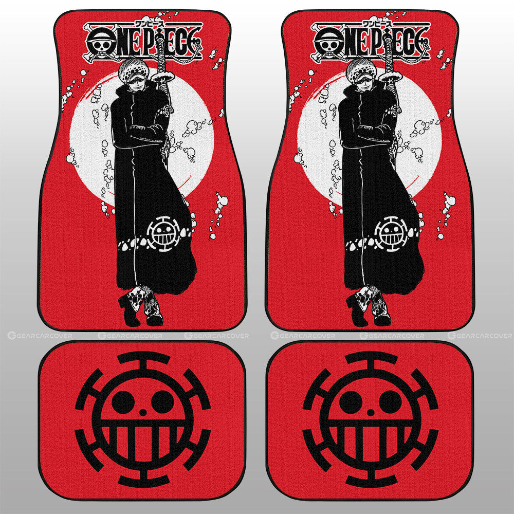 One Piece Car Mats Cool Trafalgar Law Graphic Heart Pirate Symbol Car Floor Mats Red Black