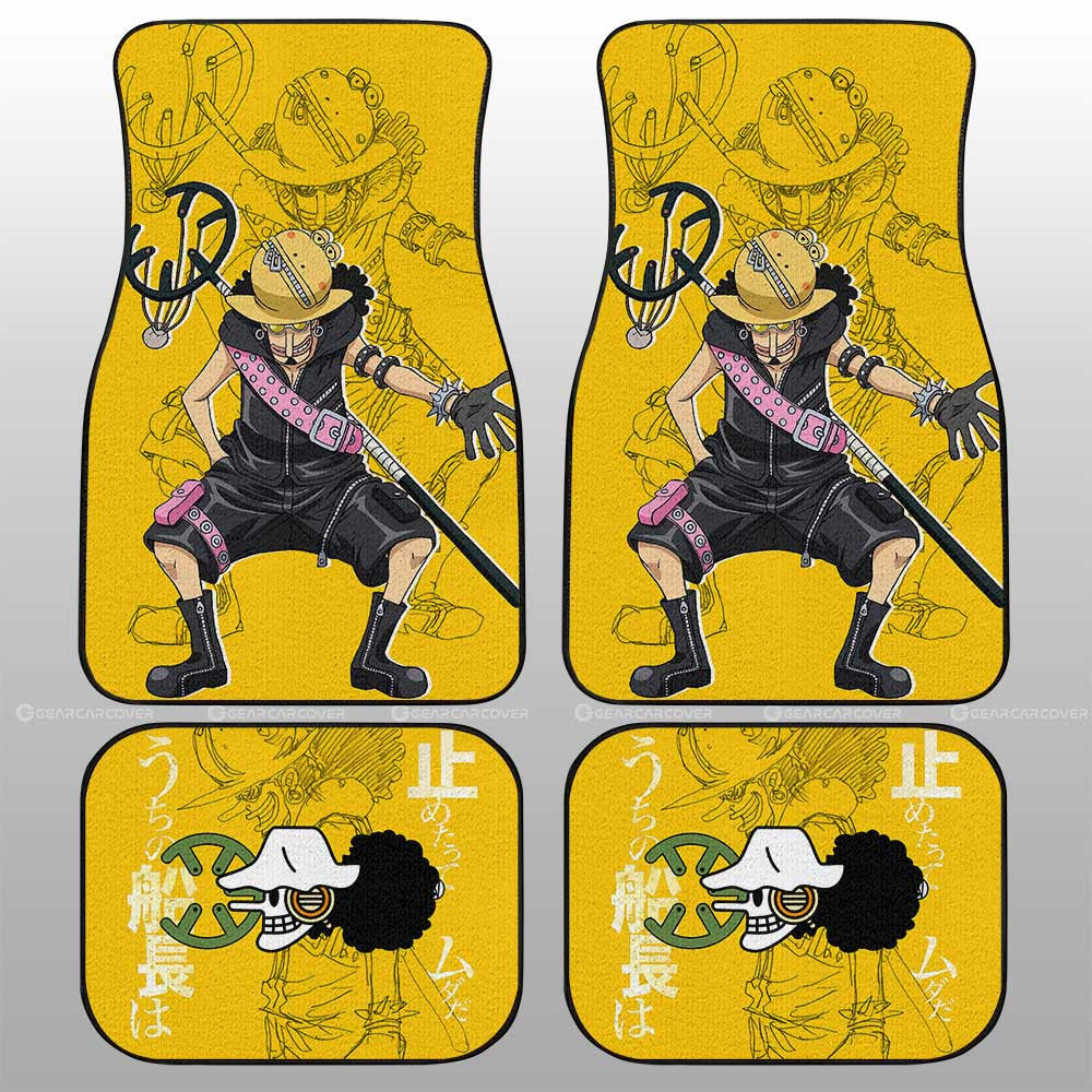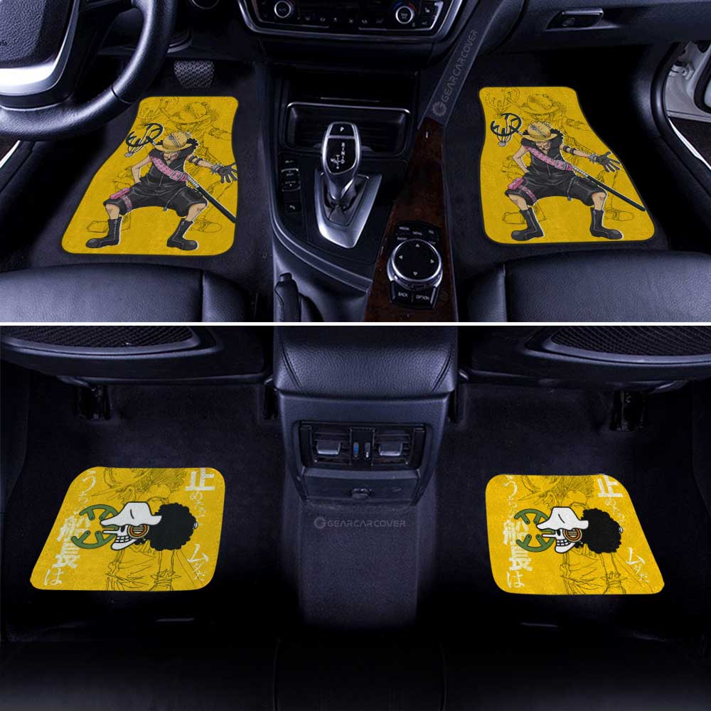 One Piece Car Mats Cool Usopp Graphic Jolly Roger Symbol Car Floor Mats Yellow