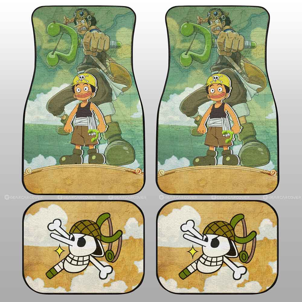 One Piece Car Mats Cute Young Usopp Graphic Jolly Roger Symbol Car Floor Mats Green Yellow