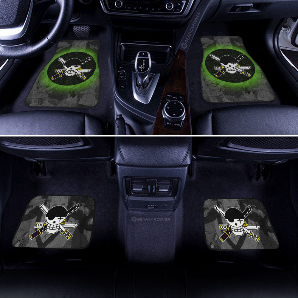 One Piece Car Mats Manga Pattern Zoro Jolly Roger Symbol Car Floor Mats Black Green