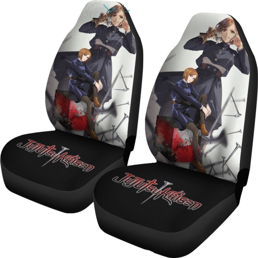Jujutsu Kaisen Car Seat Covers Nobara Using Weapons Hammer And Nail Seat Covers Black White