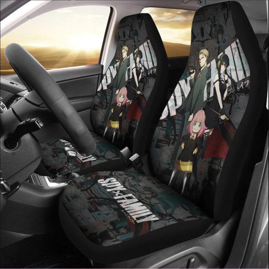 Spy X Family Car Seat Covers Loid Yor And Anya Forger Fight Seat Covers Black