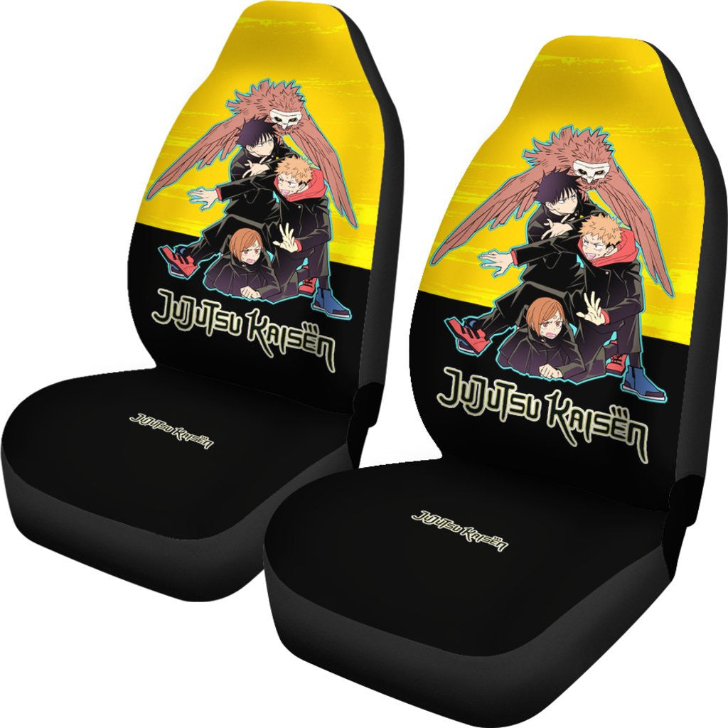 Jujutsu Kaisen Car Seat Covers Yuji Megumi Nobara Graphic Seat Covers Black Yellow