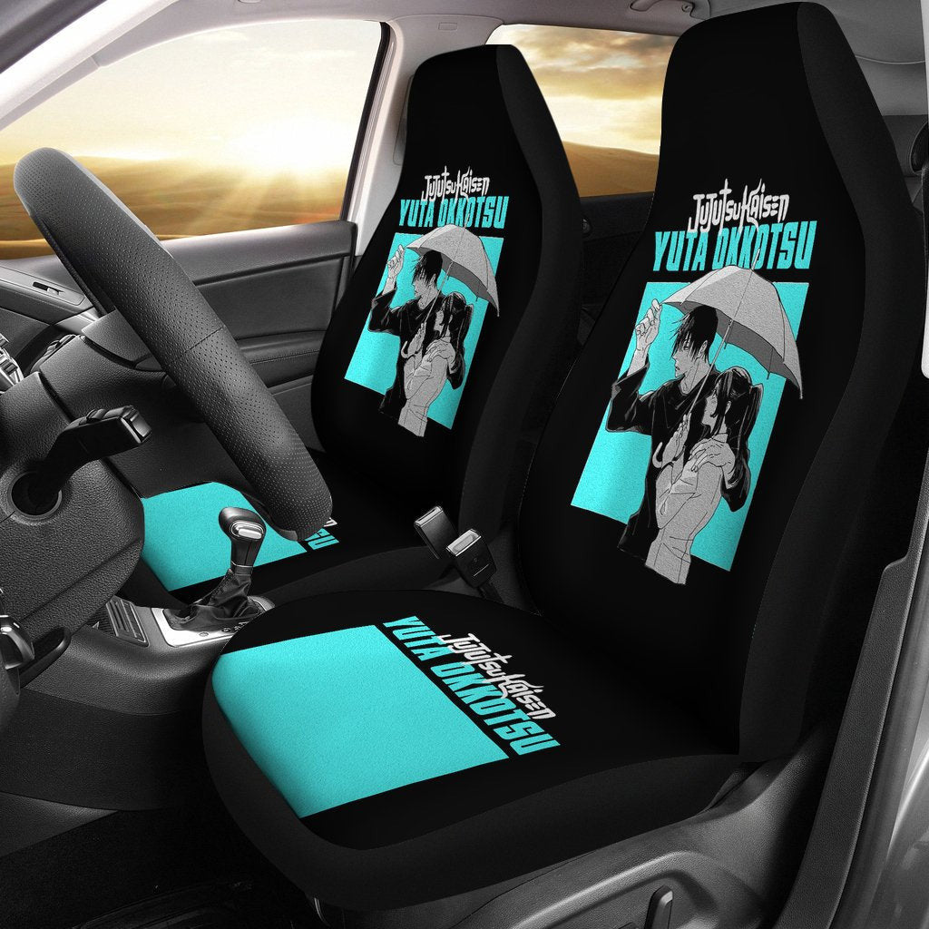 Jujutsu Kaisen Car Seat Covers Yuta Okkotsu Couple Graphic Seat Covers Black Blue