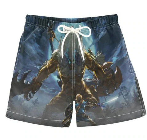 The Legend Of Zelda Shorts Link Fights The Golden Lynel Graphic Beach Shorts Blue