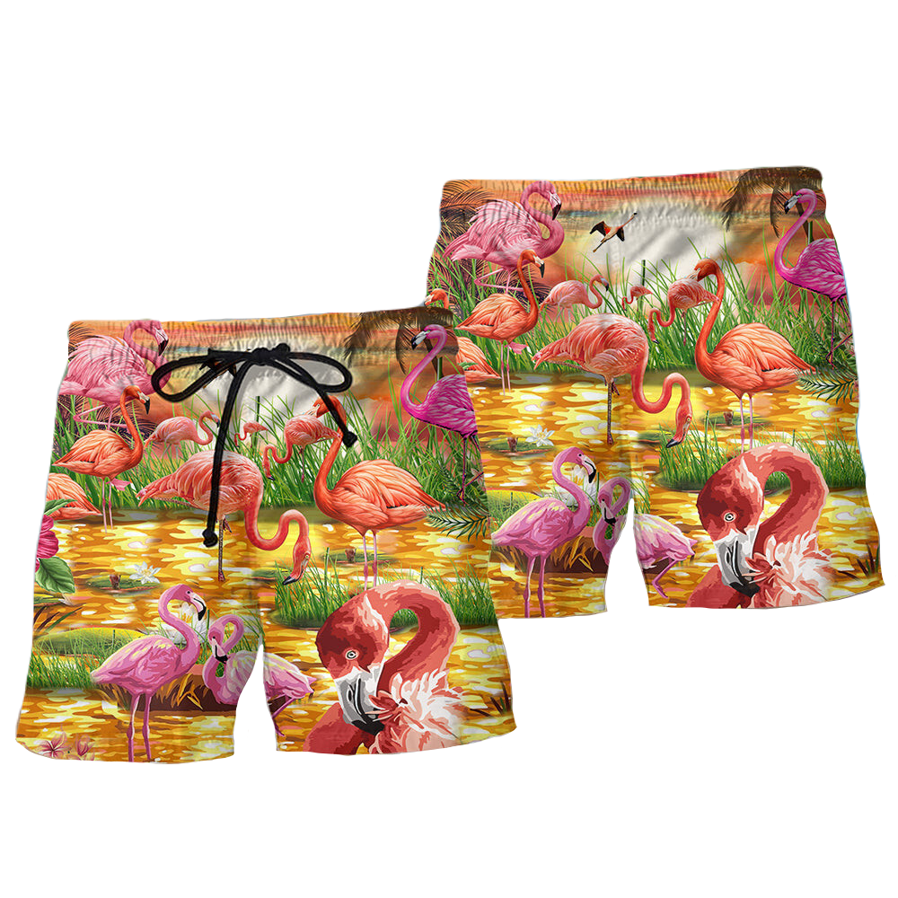 Flamingo Shorts Romantic Sunset With Flamingo Beach Shorts Pink Yellow