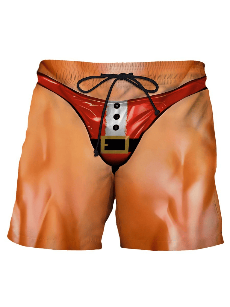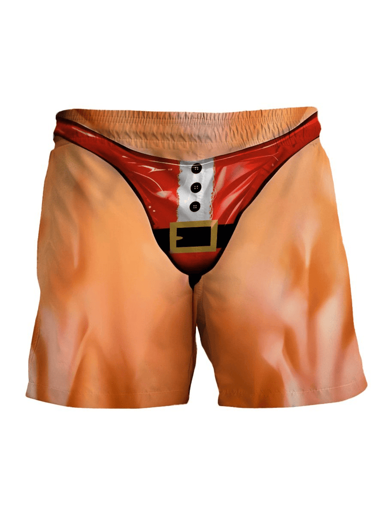 Funny Shorts Muscular Christmas Costume Beach Shorts Brown Red