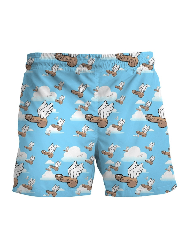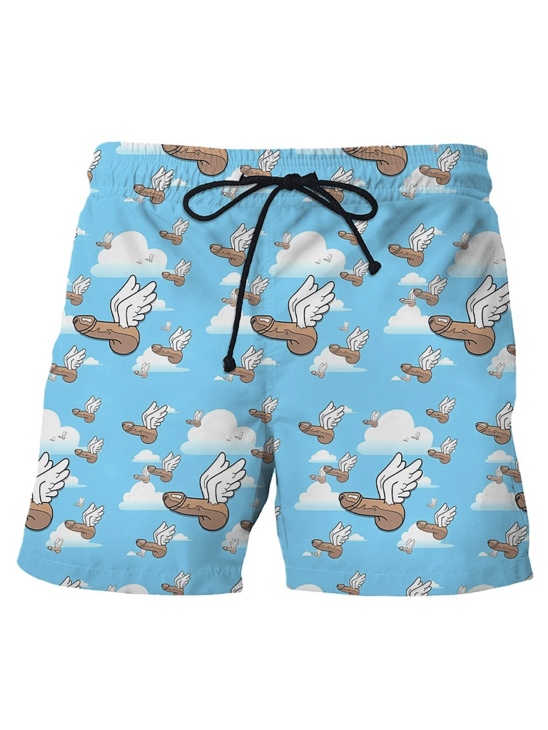 Funny Shorts Funny Flying Cloud Pattern Beach Shorts Blue