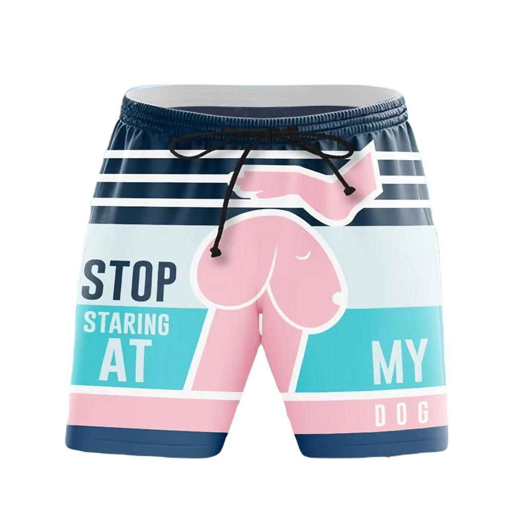 Funny Shorts Stop Staring At My Dog Beach Shorts Colorful