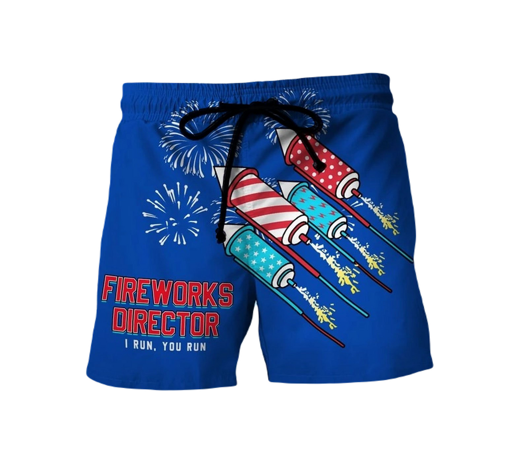 Funny Shorts Fireworks Director I Run You Run Beach Shorts Blue