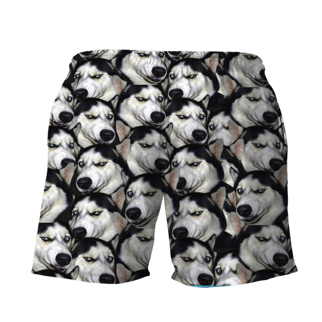Funny Shorts Funny Face Husky Pattern Beach Shorts Black White