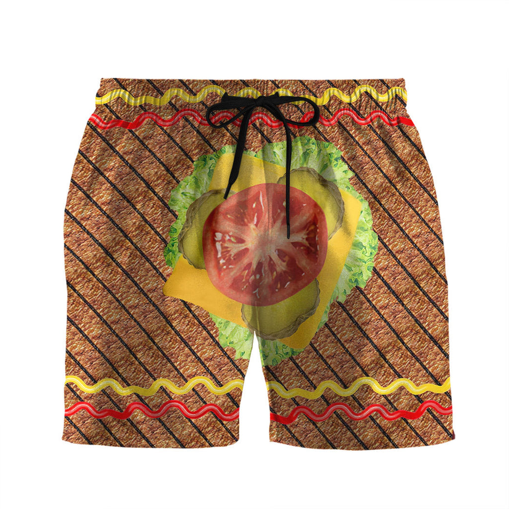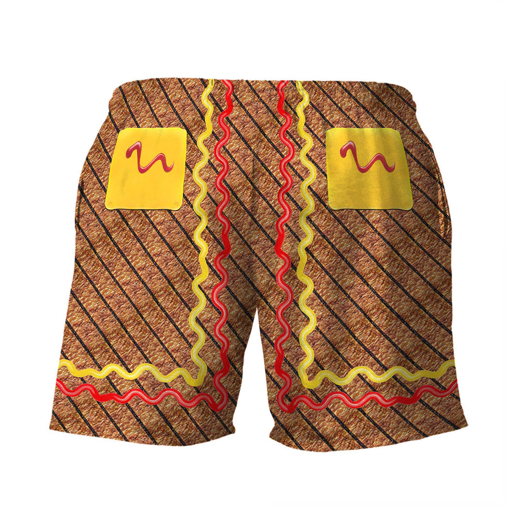 Funny Shorts Hamburger Items Ketchup Mustard Graphic Beach Shorts Colorful