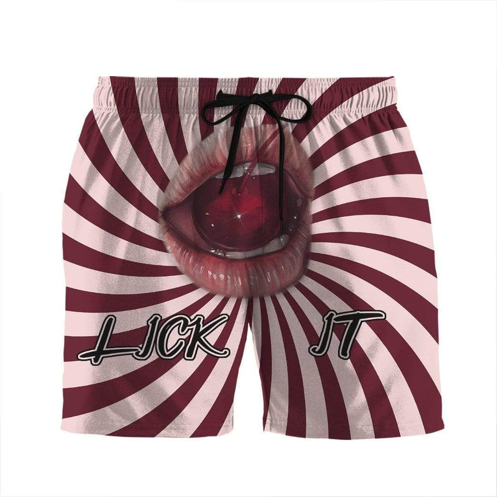 Funny Shorts Lick It Lips And Candy Beach Shorts Red Pink