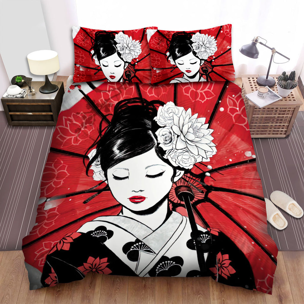 Japan Bedding Set Japan Art Geisha With Umbrella Duvet Covers Black Red Unique Gift