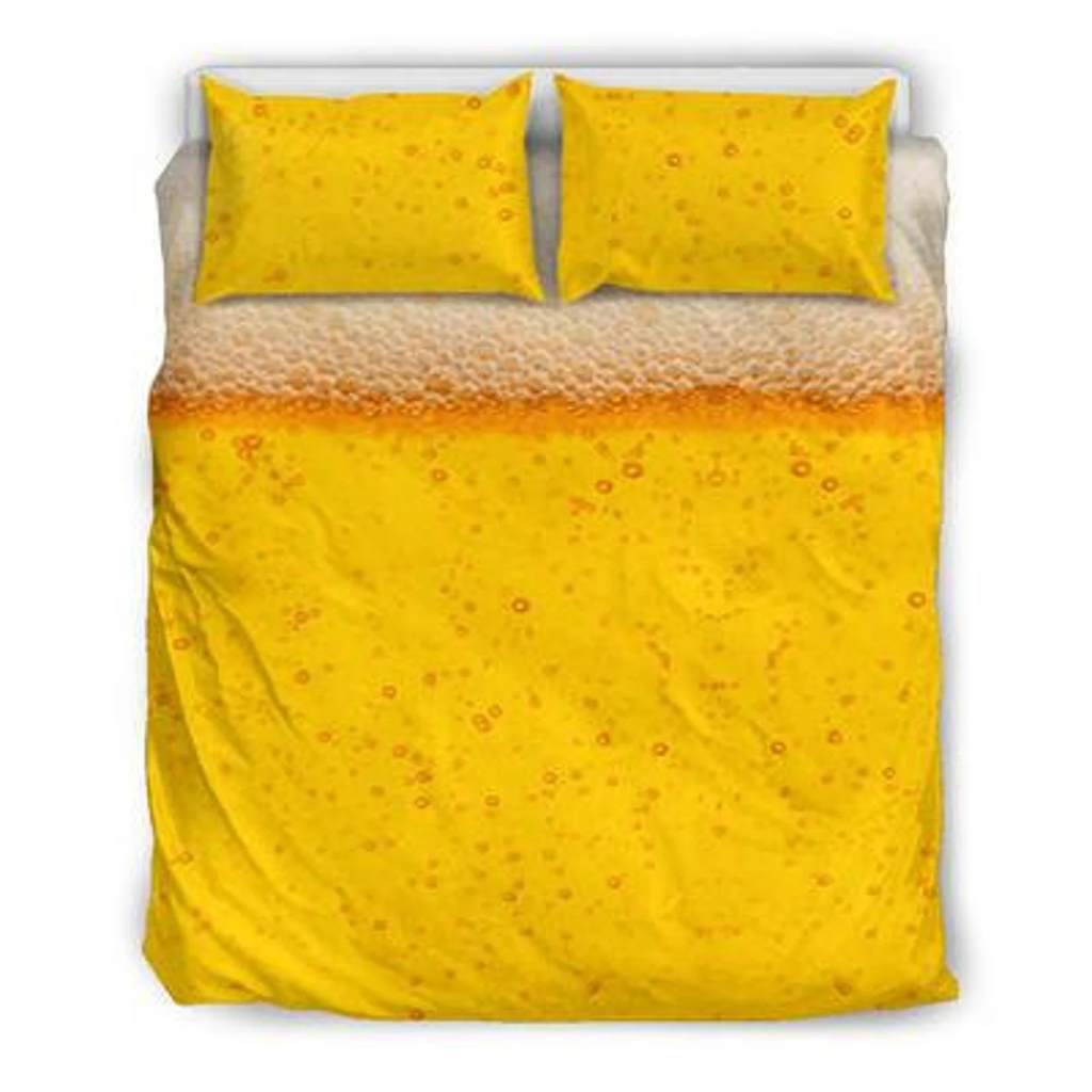 Beer Bedding Set Beer Drink Bubble Pattern Duvet Covers White Yellow Unique Gift