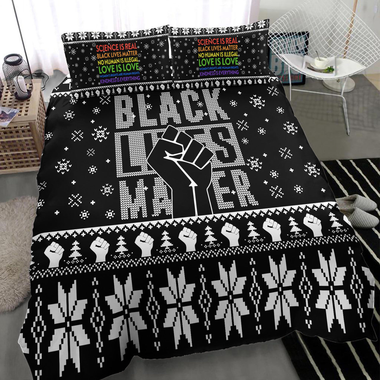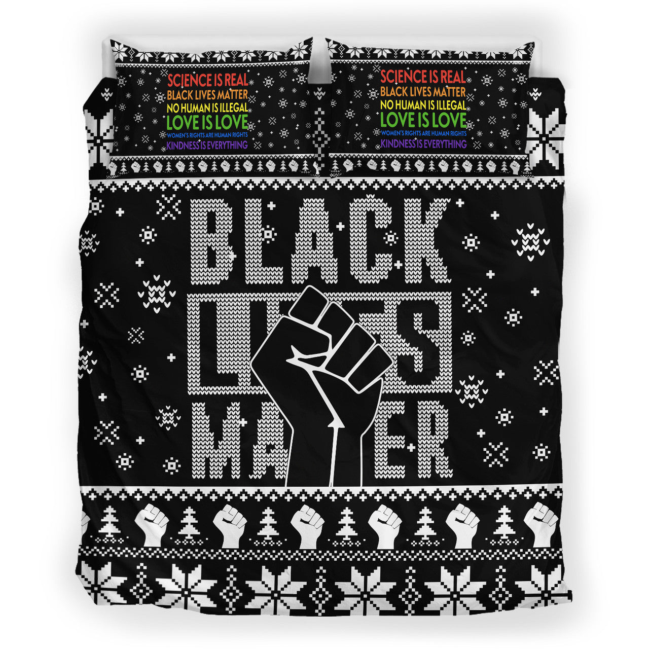 BLM Bedding Set BLM Christmas Snowflakes Pattern Duvet Covers Black Unique Gift