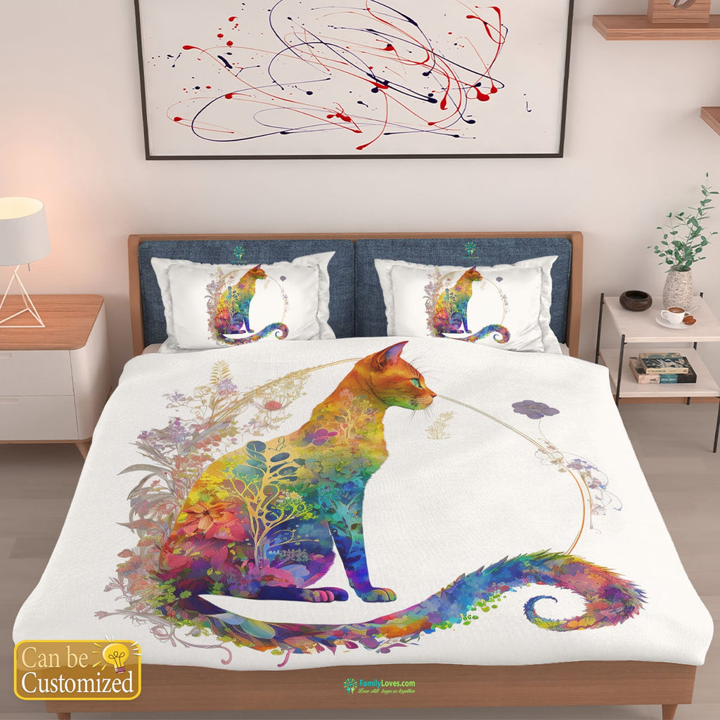 Cat Bedding Set Cat And Flower Watercolor Art Duvet Covers Colorful Unique Gift