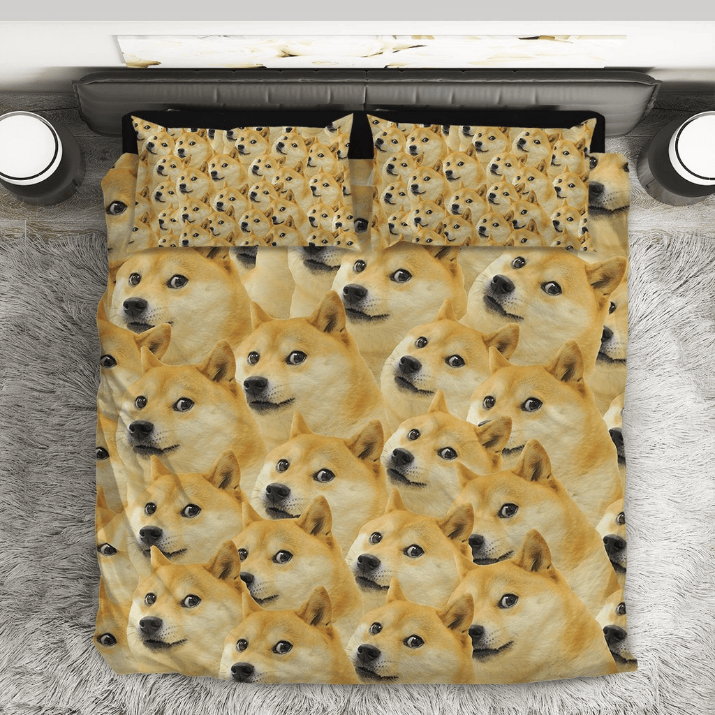 Funny Bedding Set Funny Doge Dog Meme Pattern Duvet Covers Yellow Unique Gift