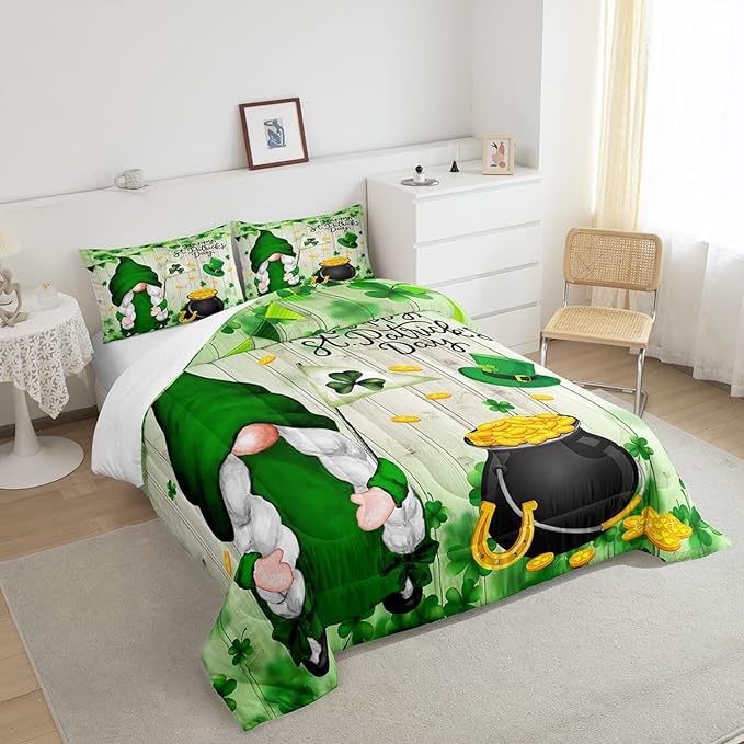 St Patrick Day Bedding Set Happy St Patrick Day Gnome Coin Caulron Duvet Covers Green Unique Gift