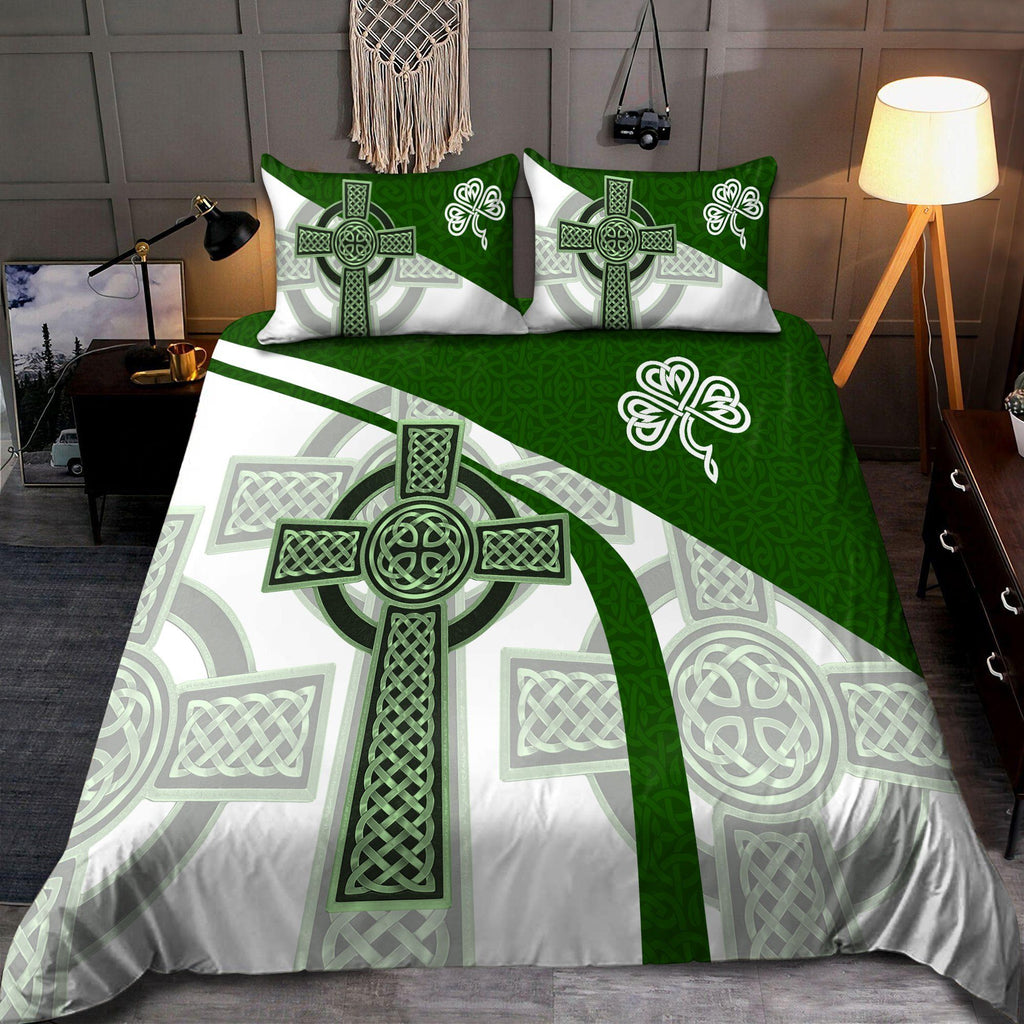 St Patrick Day Bedding Set Irish Celtic Knot Cross Duvet Covers Green White Unique Gift