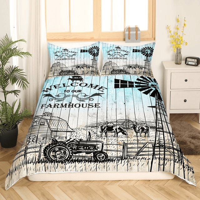 Farmer Bedding Set Welcome To Our Farmhouse Duvet Covers Blue Unique Gift