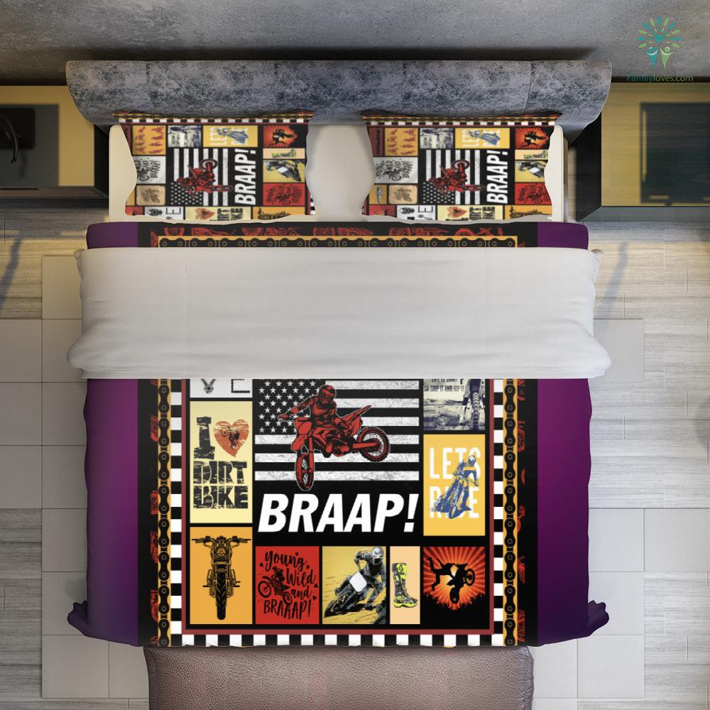 Motorcycle Bedding Set Young Wild And Braaap Duvet Covers Red Yellow Unique Gift