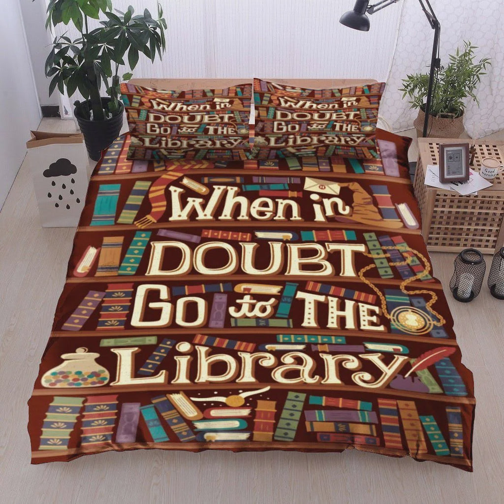 Book Bedding Set When In Doubt Go To The Library Duvet Covers Brown Unique Gift