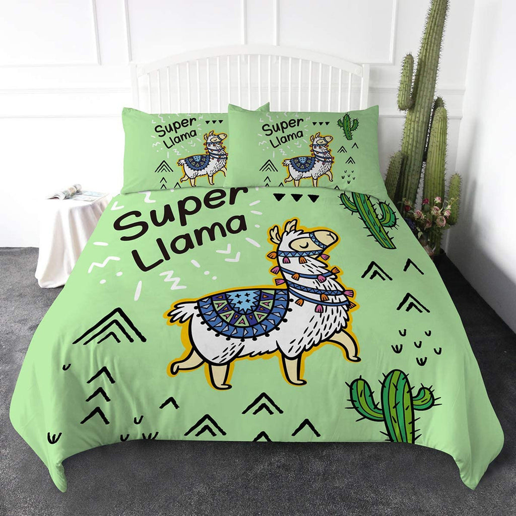 Llama Bedding Set Super Llama And Cactus Pattern Duvet Covers Green Unique Gift