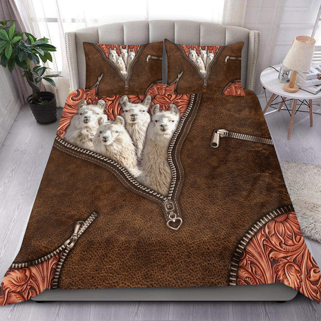 Llama Bedding Set Llama Zipper Leather Pattern Duvet Covers Brown Unique Gift
