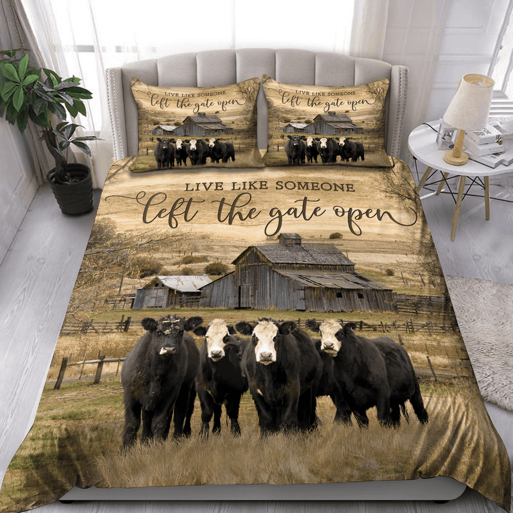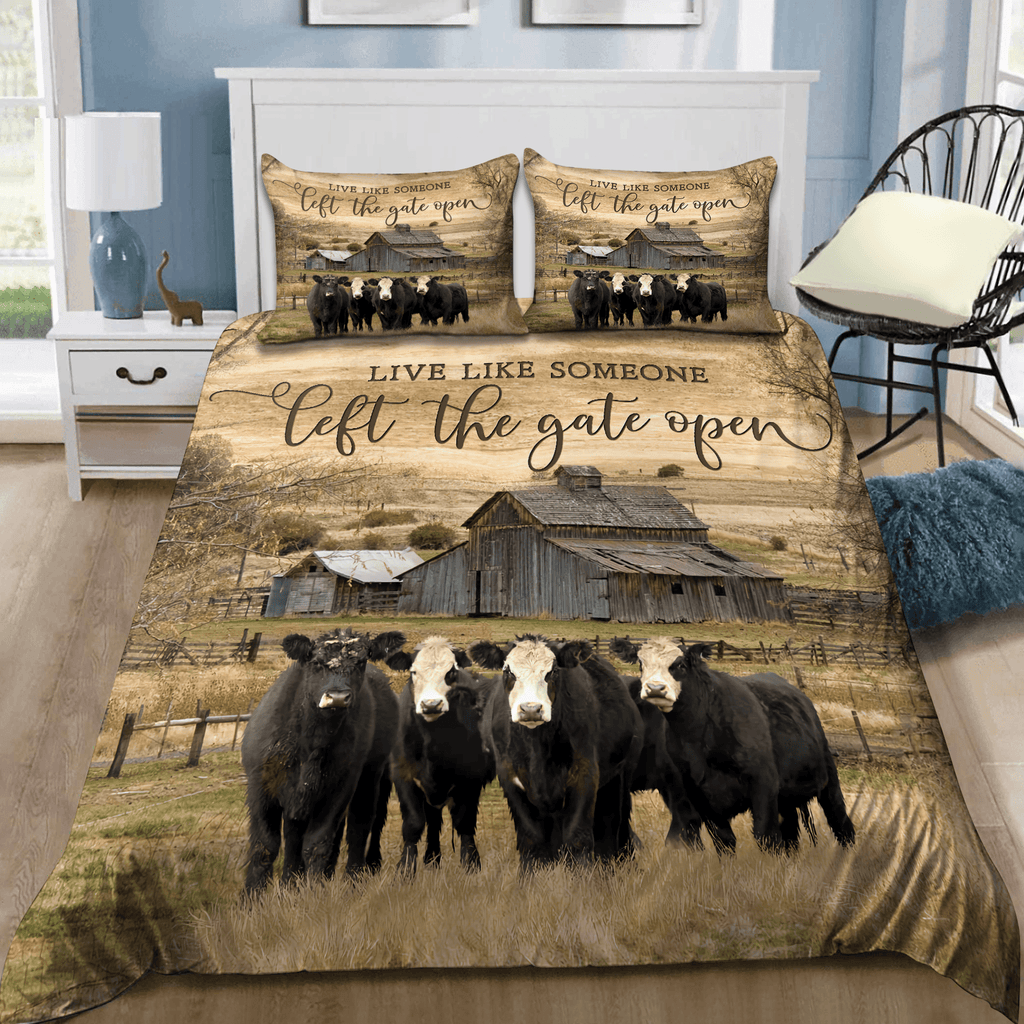 Cow Bedding Set Live Like Someone Left The Gate Open Duvet Covers Brown Unique Gift