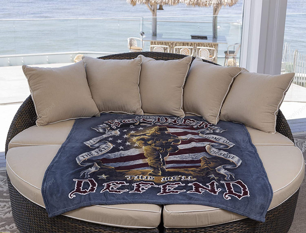 Veteran Blanket American Soldier This We'll Defend Blanket Brown