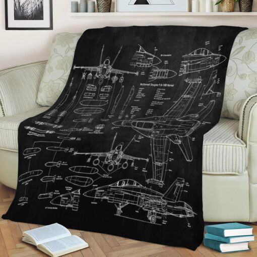 Veteran Blanket F18 Fighter Military Sketch Blanket Black