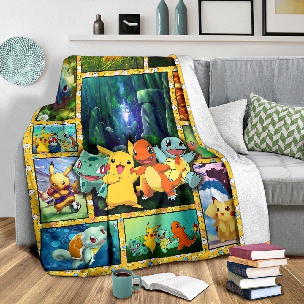 PKM Blanket PKM Starters Pikachu And Friends Blanket Colorful