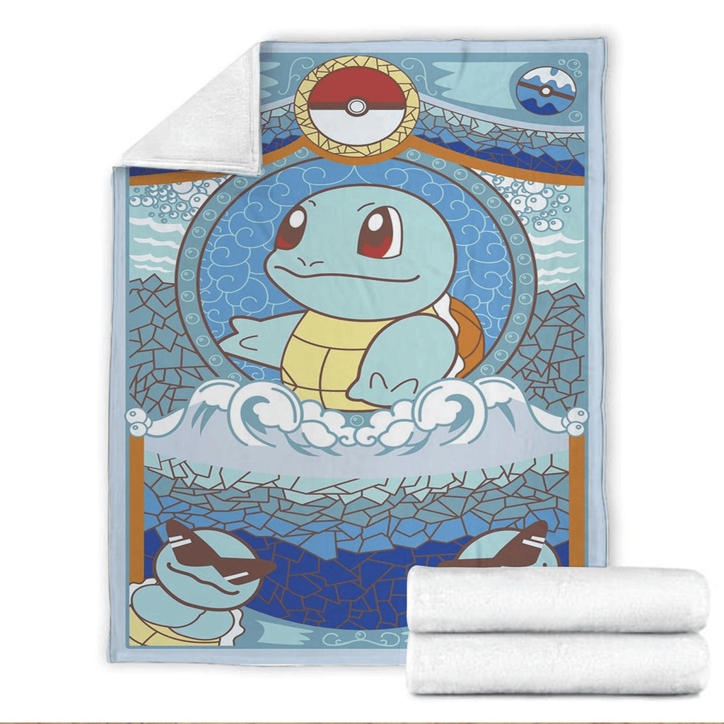 PKM Blanket Cool Sunglasses Squirtle Ocean Pattern Blanket Blue