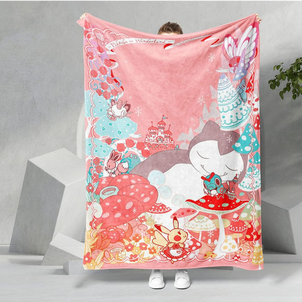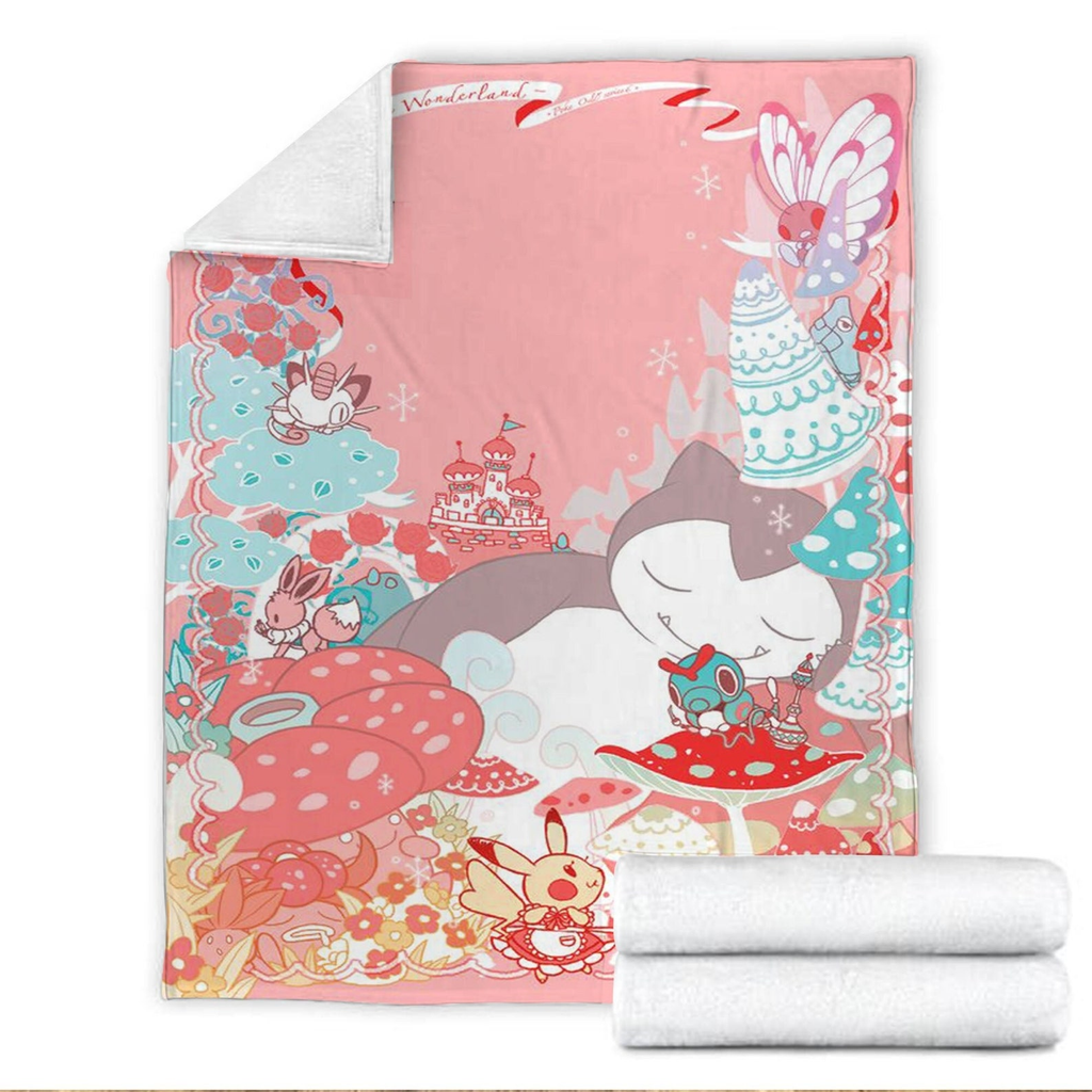 PKM Blanket Snorlax Sleeps In Wonderland Blanket Pink