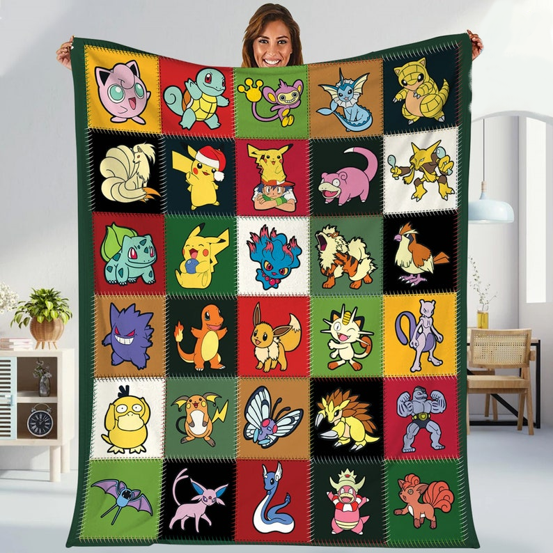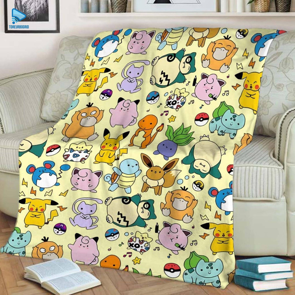 PKM Blanket All PKM Cute Chibi Pattern Blanket Colorful