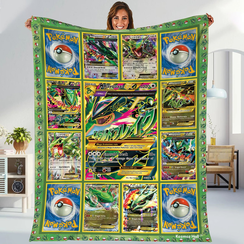 PKM Blanket Rayquaza Dragon Legendary PKM Card Blanket Green