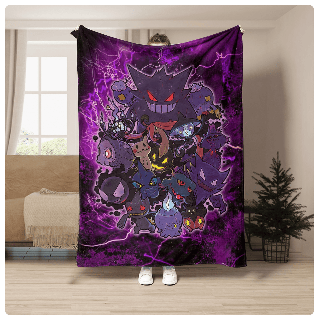 PKM Blanket PKM Ghost Type Gengar Litwick Gastly Blanket Purple