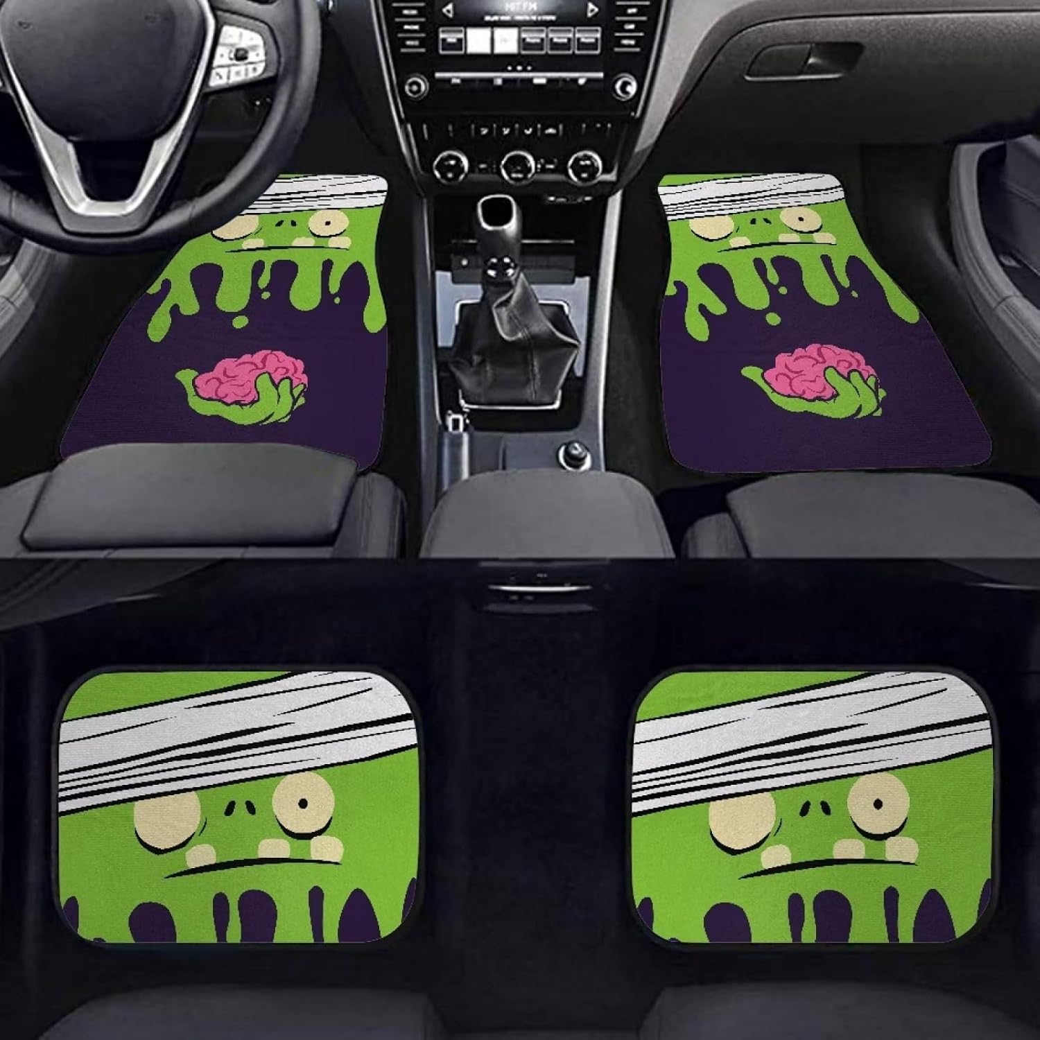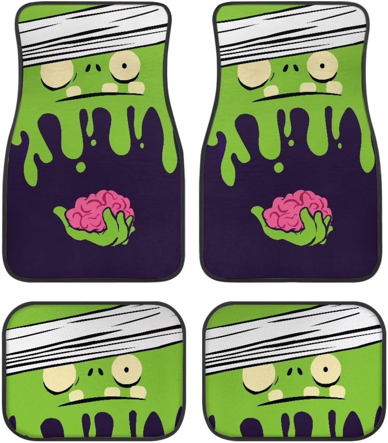 Halloween Car Mats Halloween Cartoon Bandage Zombie Brain Car Floor Mats Black Green