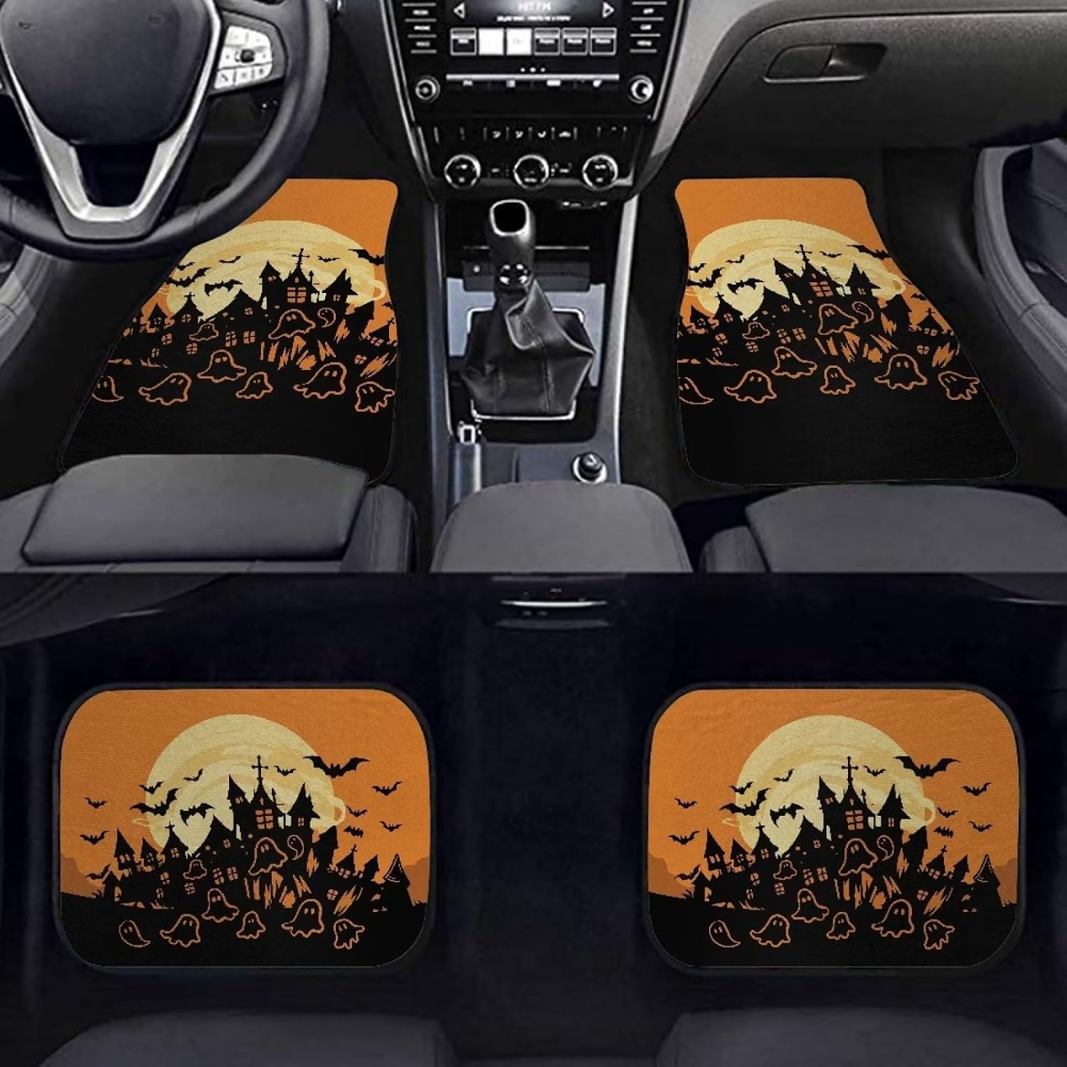 Halloween Car Mats Halloween Castle Bat Ghost Pattern Car Floor Mats Black Orange