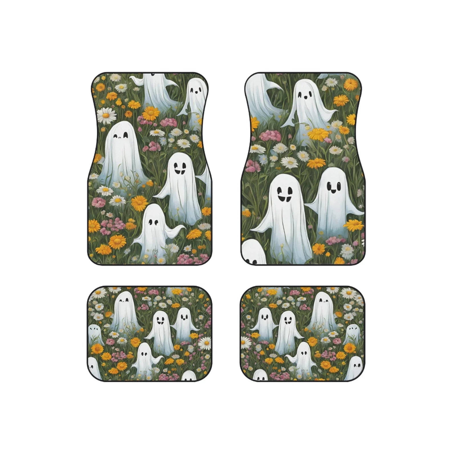 Halloween Car Mats Halloween Cute Ghost On Flower Field Car Floor Mats White Green