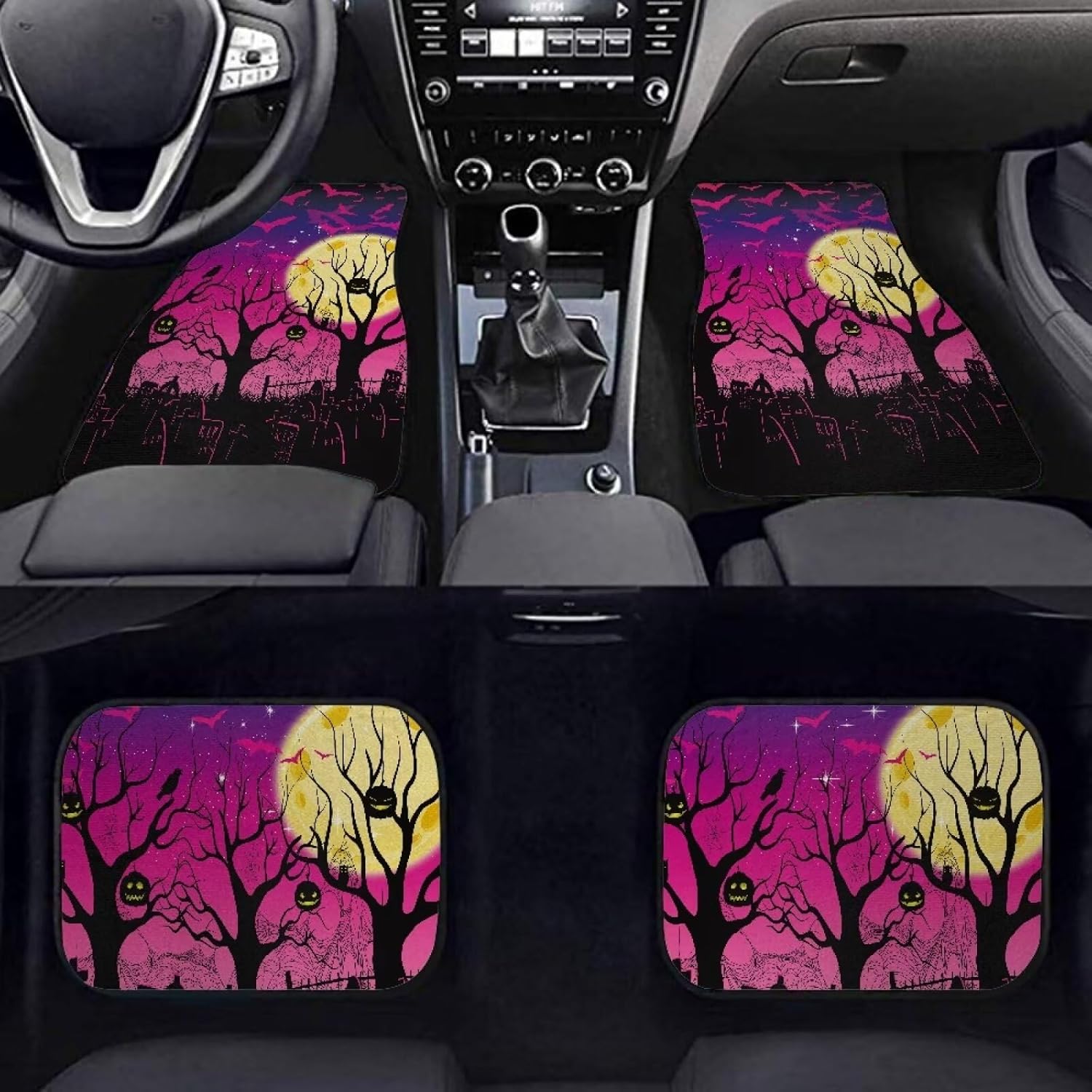 Halloween Car Mats Halloween Death Trees Moon Bats Car Floor Mats Black Pink