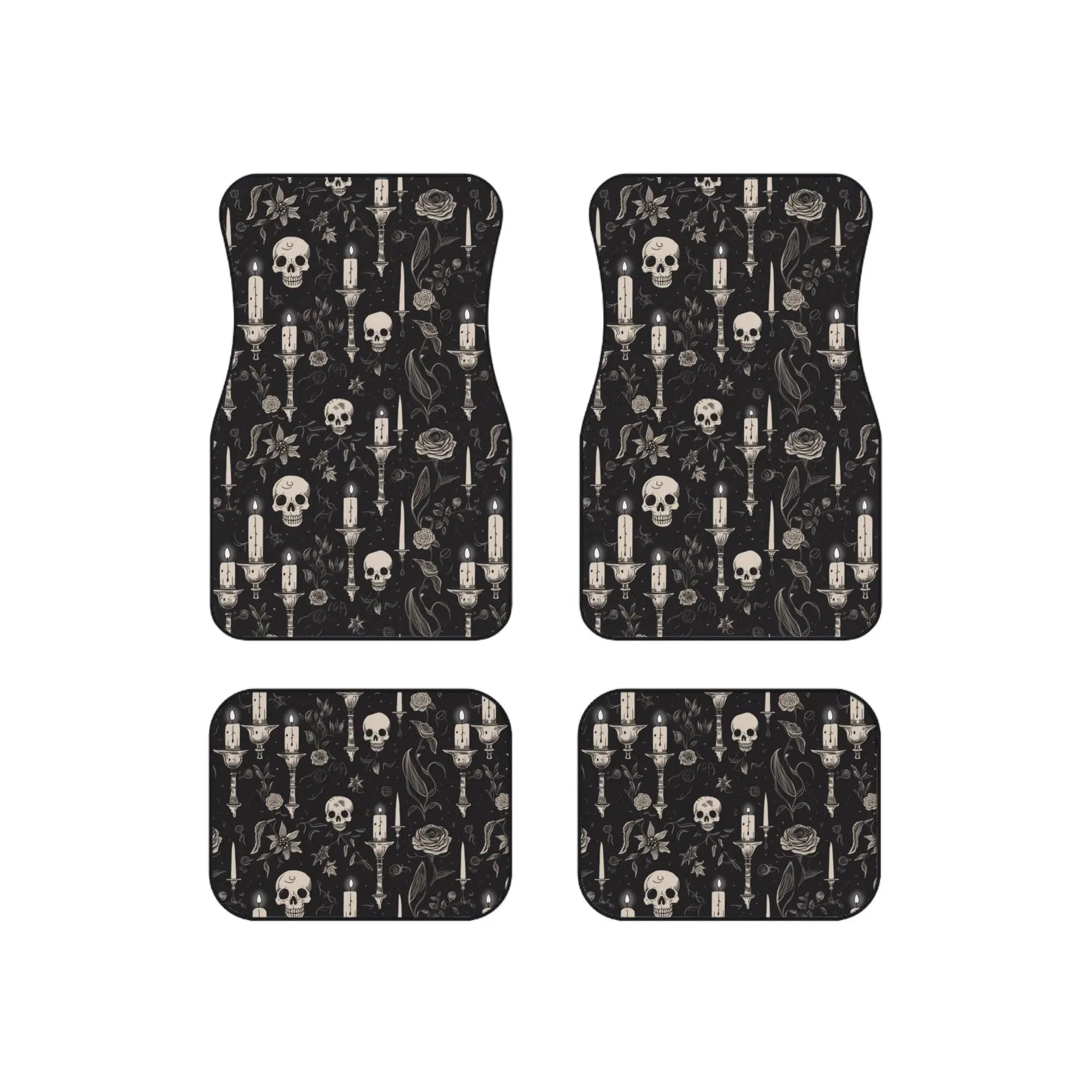 Halloween Car Mats Halloween Gothic Skull Candle Flower Pattern Car Floor Mats Black Gray